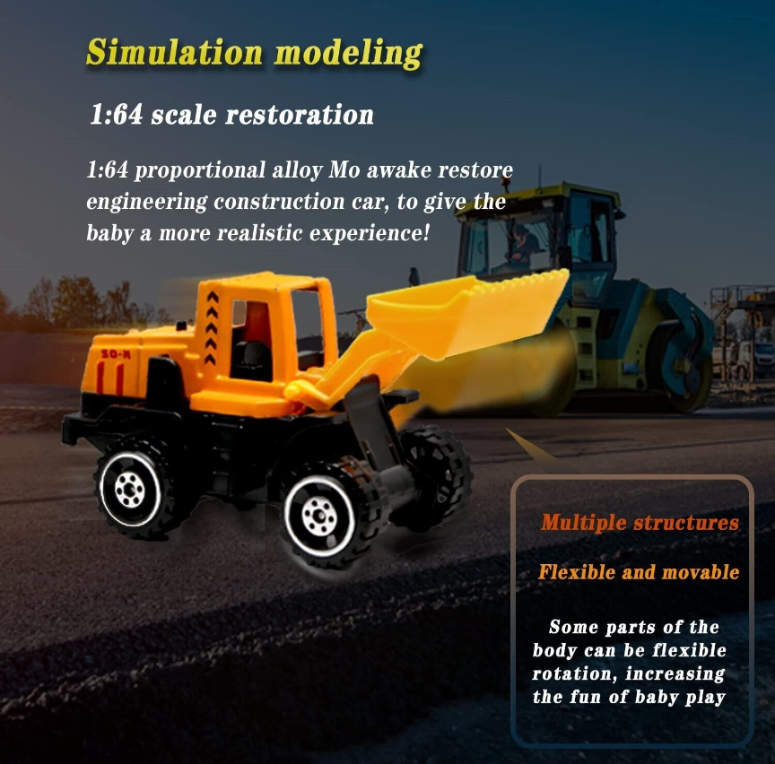 Toddler trucks is great for kids playing Engineering Construction truck or racing games, conductive to hand-eye coordination and the development of early preschool education, improving kid's practical ability through the sense of touch, It is very suitable for parent-child education and cultivate children's imagination and creativity.
